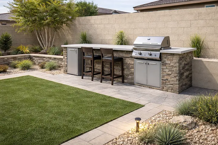 Our custom outdoor kitchens are built to turn your backyard into the ultimate gathering space. From built-in BBQs and prep counters to storage, lighting, and premium finishes, every detail is designed for performance, durability, and style in the Las Vegas climate. We combine expert craftsmanship with smart layouts to create outdoor kitchens that look incredible, function flawlessly, and are built to last.