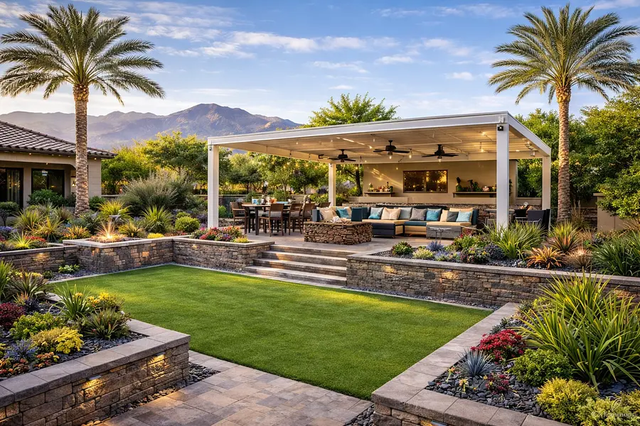 At TND Landscaping, our patios and outdoor living spaces are built with precision, durability, and the Las Vegas climate in mind. From custom paver designs to fully integrated outdoor kitchens, lighting, and shade structures, we create spaces that feel like a true extension of your home. Quality craftsmanship, clear communication, and timeless design — built to last and built to impress.