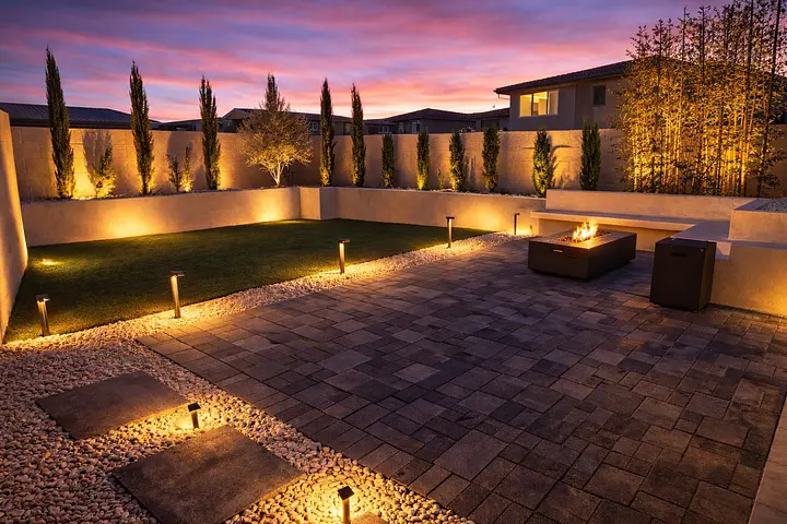 Our outdoor lighting systems are designed to transform your yard from beautiful by day to stunning at night. We strategically place pathway lights, uplighting, and accent fixtures to highlight your home’s best features while improving safety and functionality. Built for the Las Vegas climate and professionally installed for long-term performance, our lighting brings your outdoor space to life after sunset.